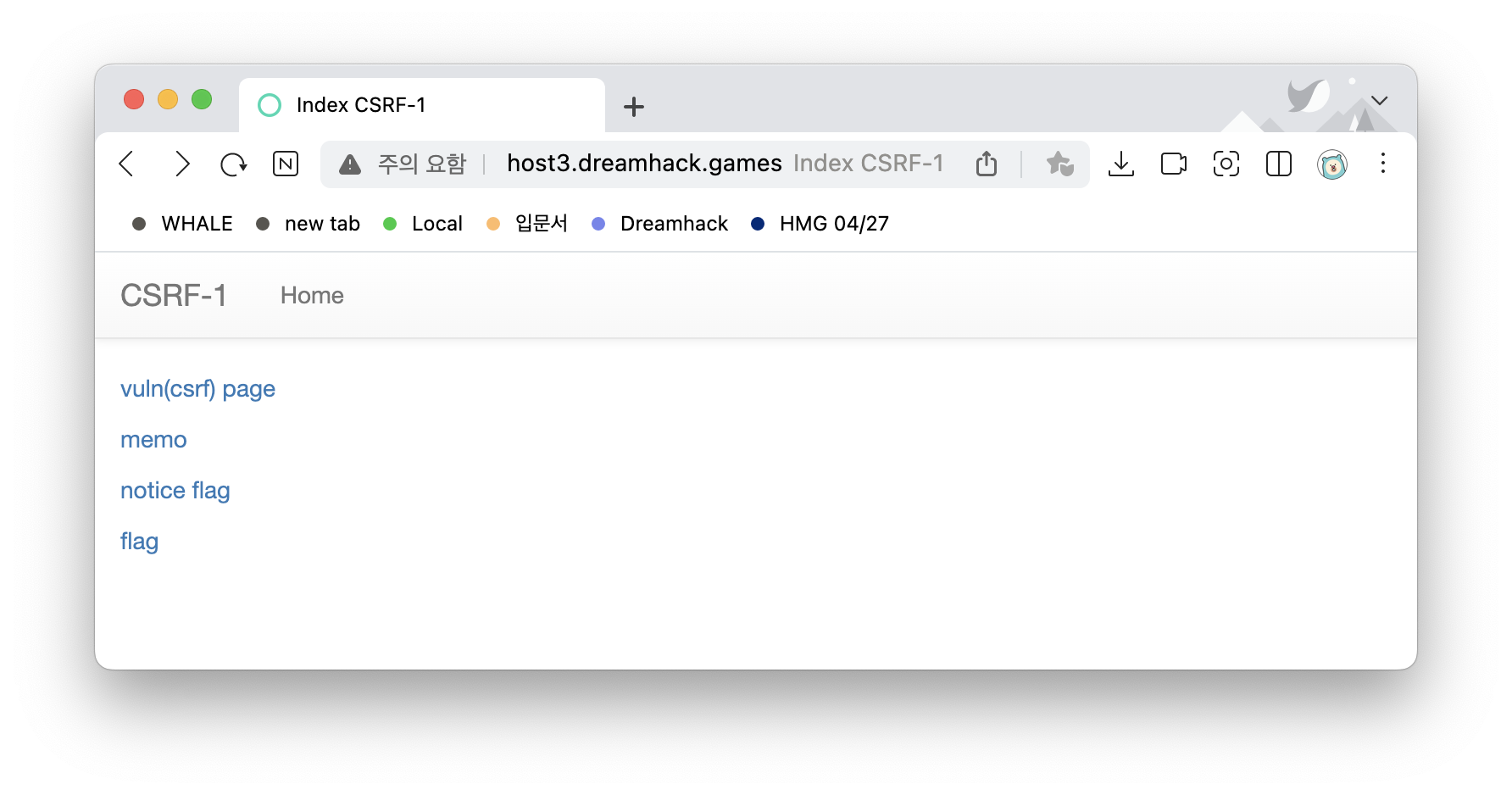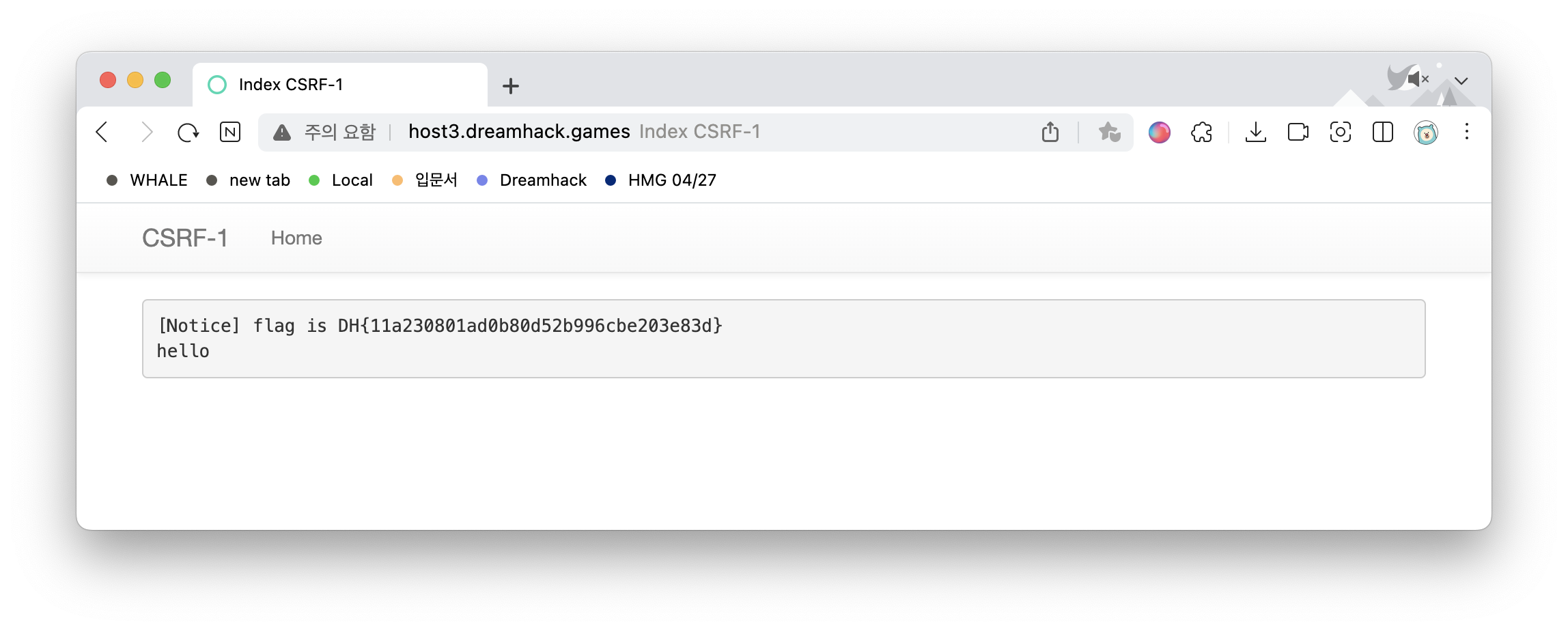 [WEB] csrf-1 문제풀이 CSRF(Cross-site request forgery) 취약점은 웹사이트 취약점 공격방법중 하나로, 사용자가 자신의 의지와는 상관없이 공격자가 의도한 수정, 삭제, 등록 행위 등 특정 웹사이트에 요