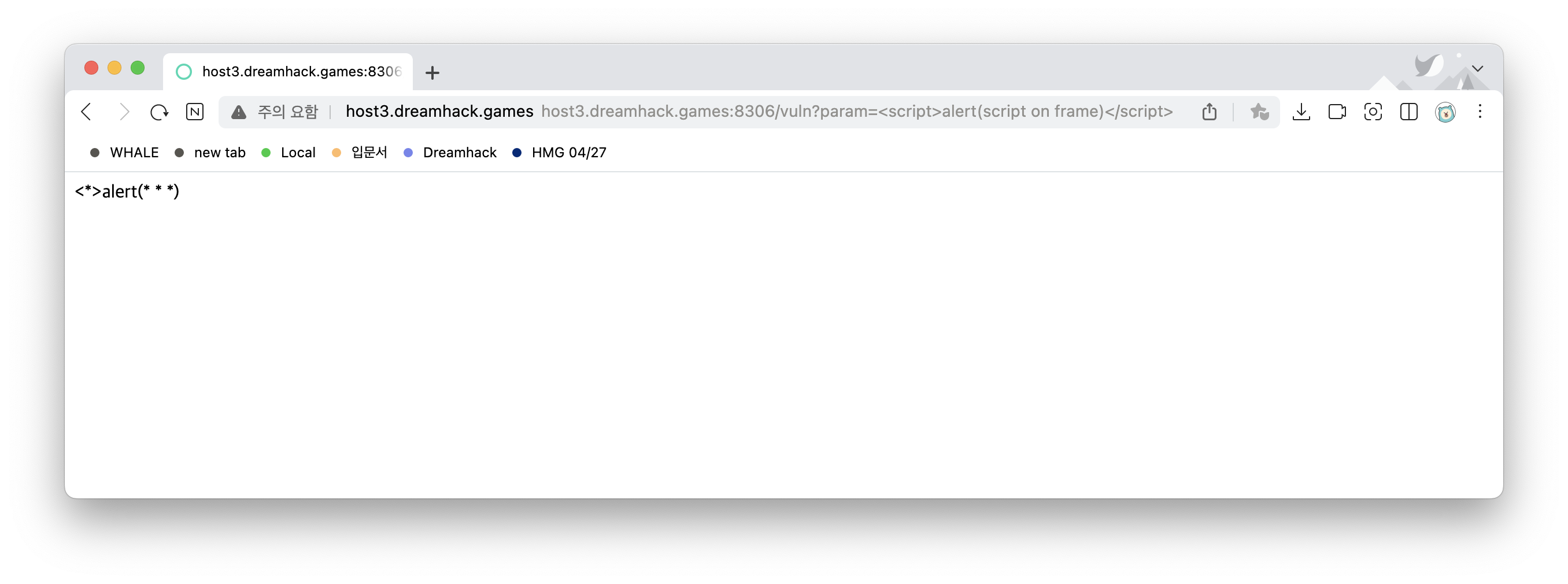 코드도 그렇고 사이트도 그렇고 저번 XSS-1과 상당히 유사하다. memo에 최종 flag를 출력해서 확인하면 되고, flag를 통해 vuln을 타겟으로 공격을 수행하면 된다. 다만 이번 문제에서는 각 페이지에 공격 수행을 어렵게 만드는 방해 요소들이 들어가 있다. vuln 페이지부터 살펴보자