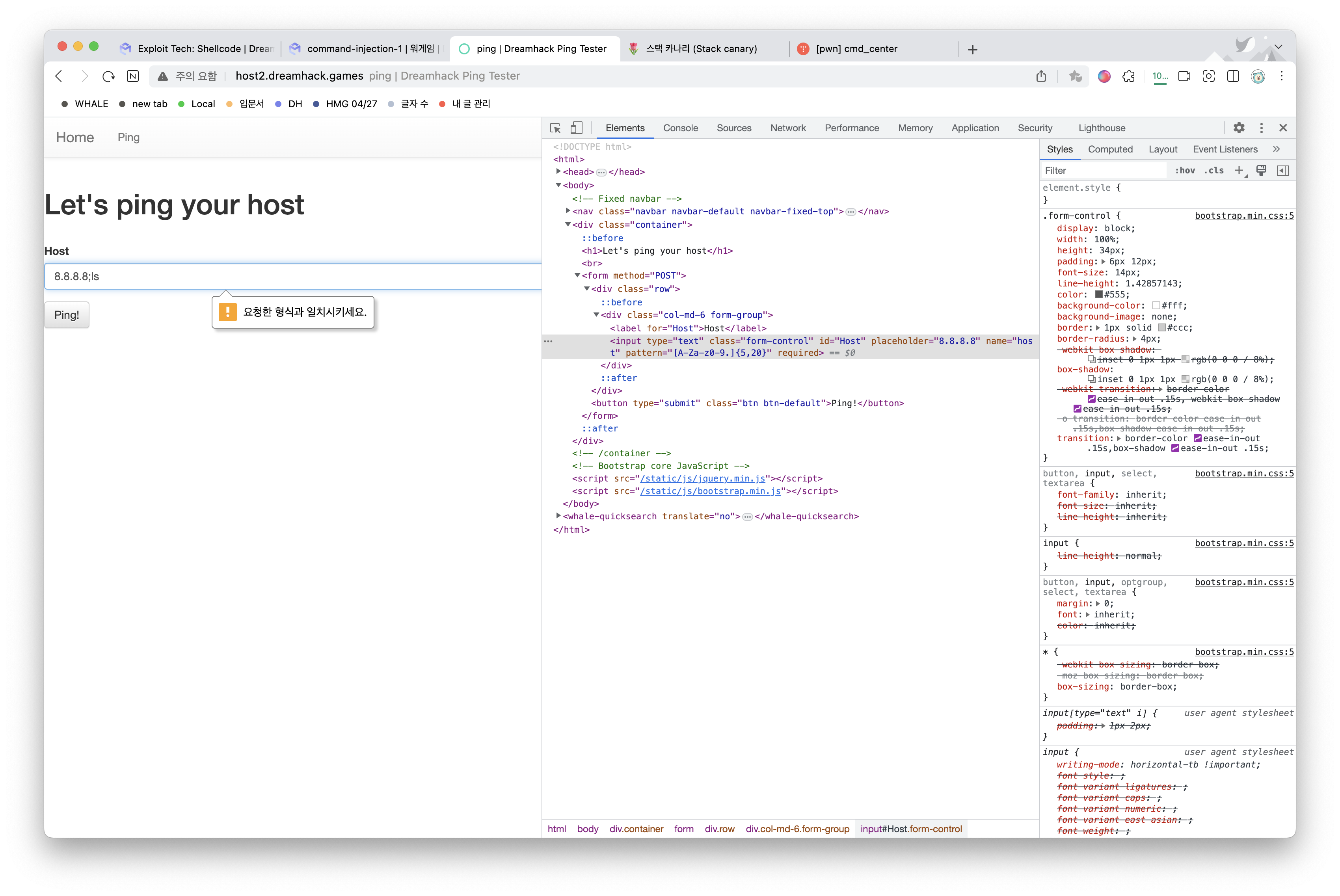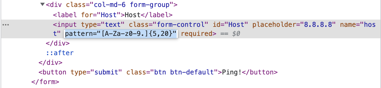 입력 필드에 바로 때려봤더니 뱉어내고 있다. 브라우저에서 바로 뱉어내는 걸로 보아 HTML 소스를 뜯어보니 알파벳과 로마 숫자만 받아들이고 있다. 해당 부분의 코드를 지워보자.