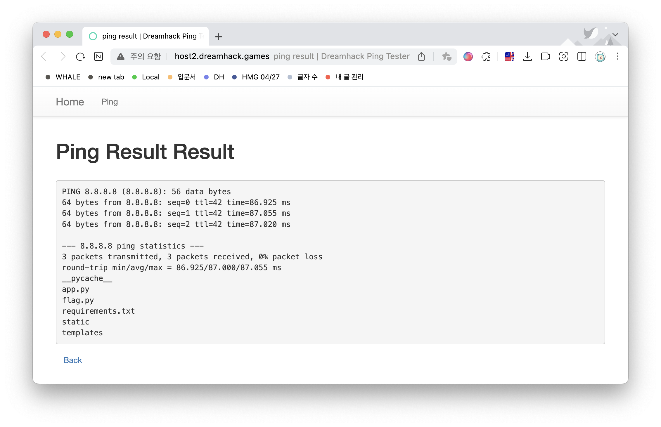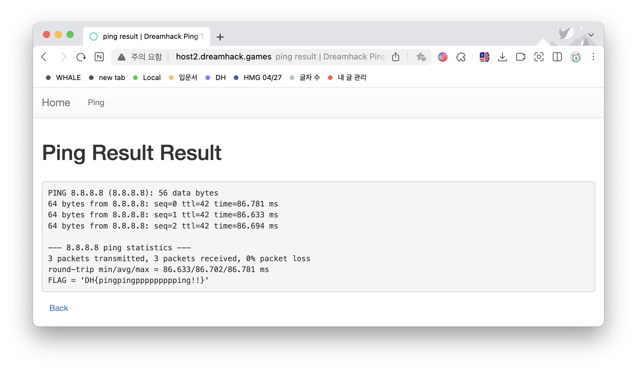 FLAG = 'DH{pingpingppppppppping!!}'War Game > dreamhack.io' 카테고리의 다른 글