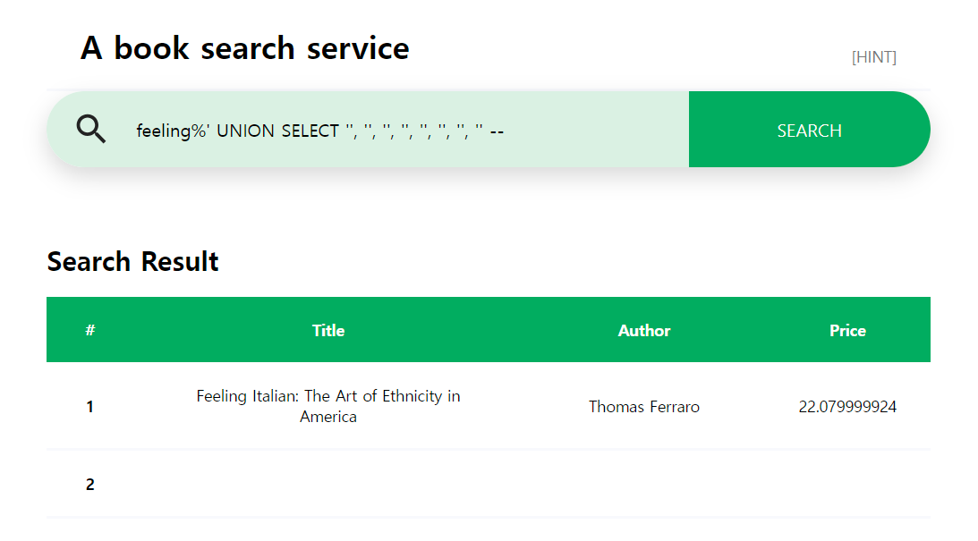오케이! 이제 UNION 명령어에 컬럼 개수를 하나씩 늘려가면서 정상적으로 검색 결과가 나올 때까지 검색을 수행해보자. 이를 통해 테이블에 존재하는 정확한 컬럼의 수를 확인할 수 있다.