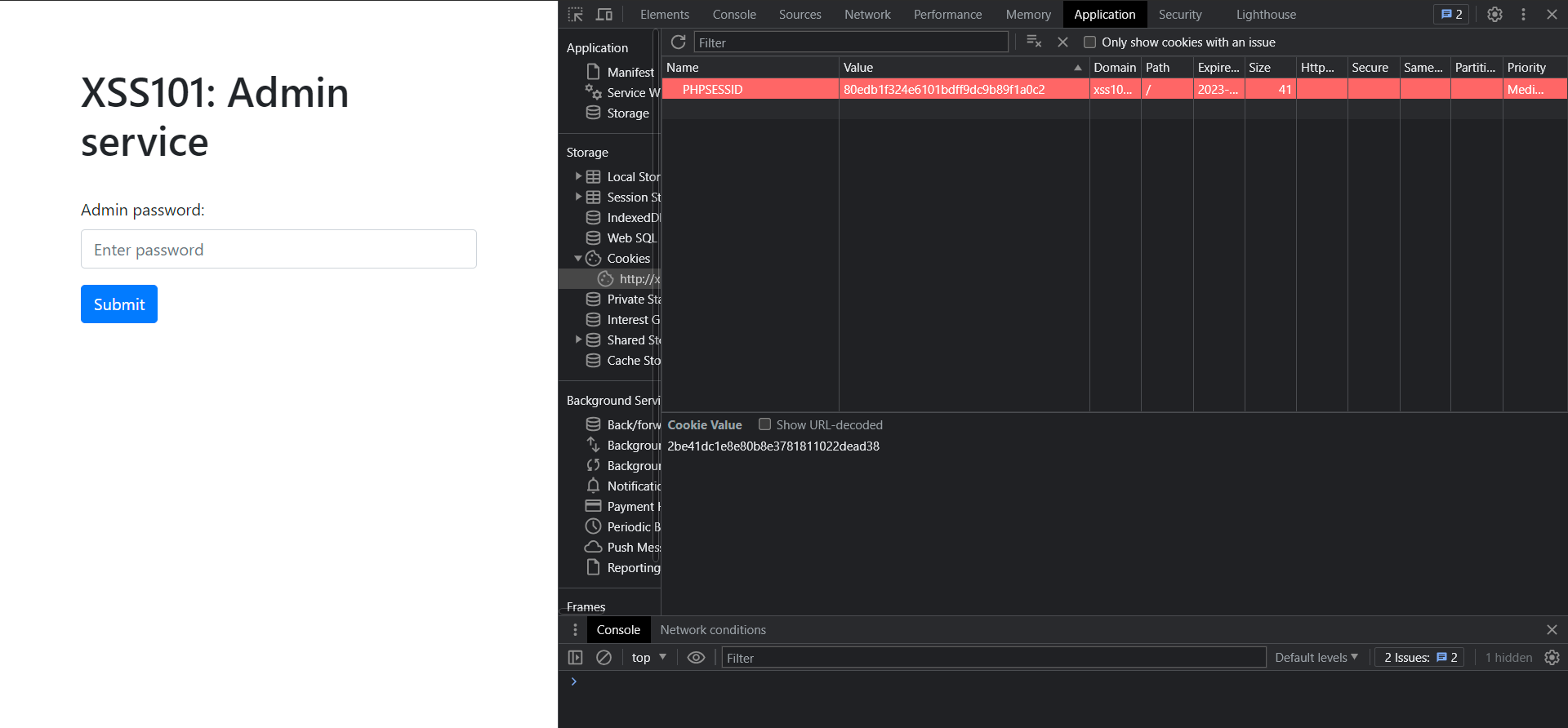 쿠키 값을 얻어냈으니, 브라우저에서 쿠키를 세팅하고 admin 관리 페이지가 있을 것으로 예상되는 '/admin.php'로 이동해보자.