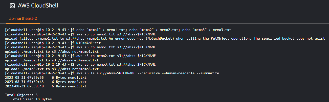 aws s3 cp memo3.txt s3://ahss-$NICKNAME