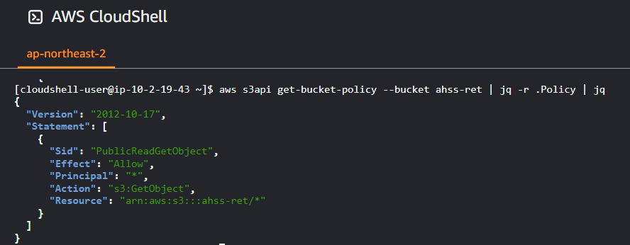 aws s3api get-bucket-policy --bucket [[Name of Bucket]] | jq -r .Policy | jq