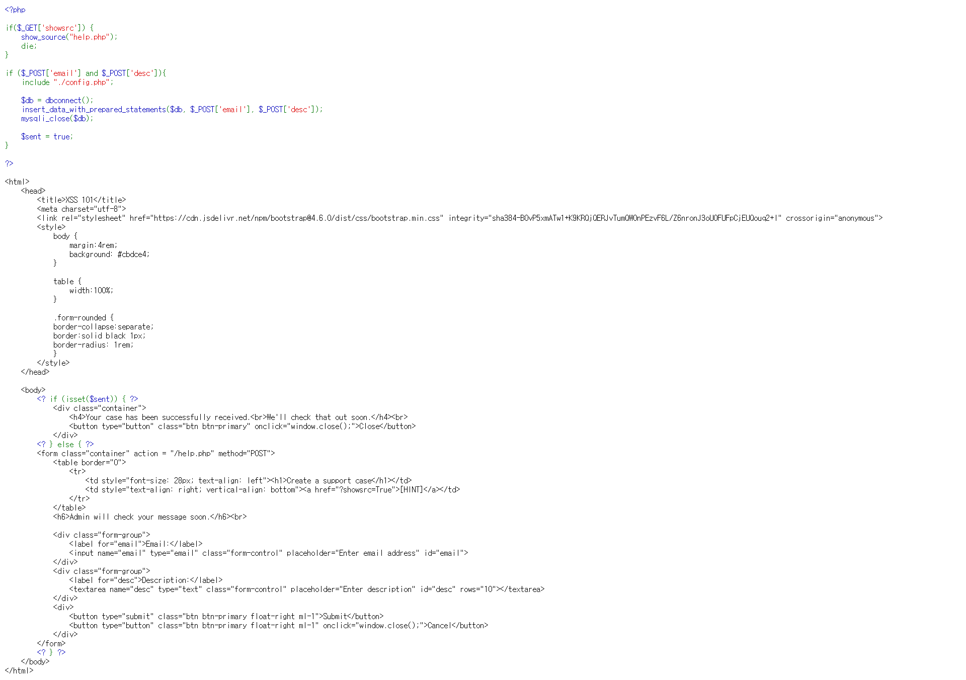 'Need Help?' 하이퍼링크를 누르면 해당 페이지의 소스코드가 표출된다.